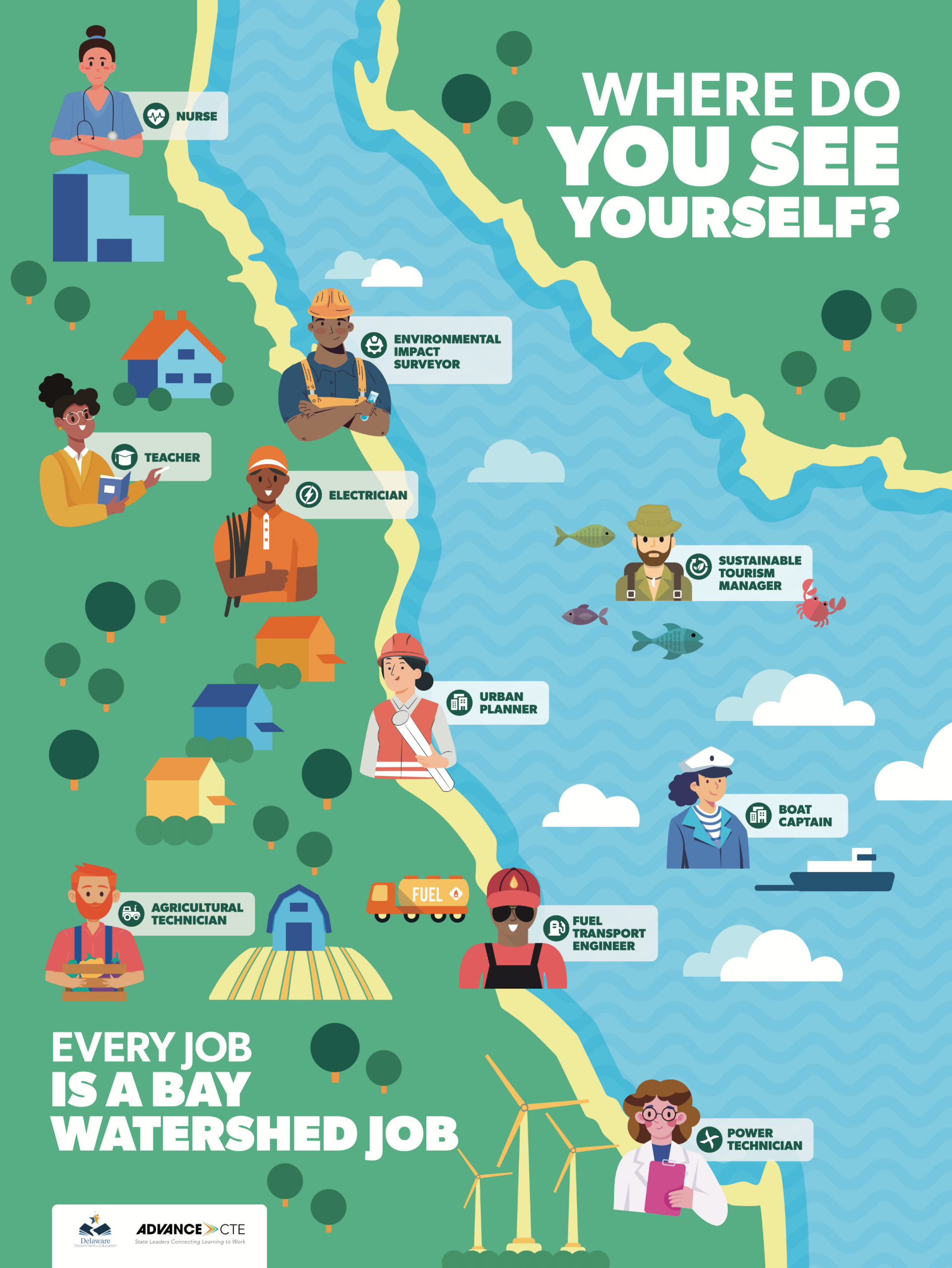 Additional Resource: This project is accompanied by a poster for use by DDOE, Delaware guidance counselors, teachers, and other school administrators to emphasize the integration of environmental literacy across different career fields. PNG, Printable PDF