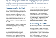 The Promising Credentials report highlights to all sectors of Hawaii (labor, postsecondary, secondary, workforce) whether the credentials learners are earning provide clear pathways to employment that pay family sustaining wages. The analysis utilized labor market data in connection with outreach to local Hawaii businesses to narrow the identified credentials from over 2,000 to 137 that are associated with in-demand, living-wage occupations. Equipped with the data and insights from this report, Hawaii will work to connect learners across the career pathways continuum by grouping credentials into four broad categories: